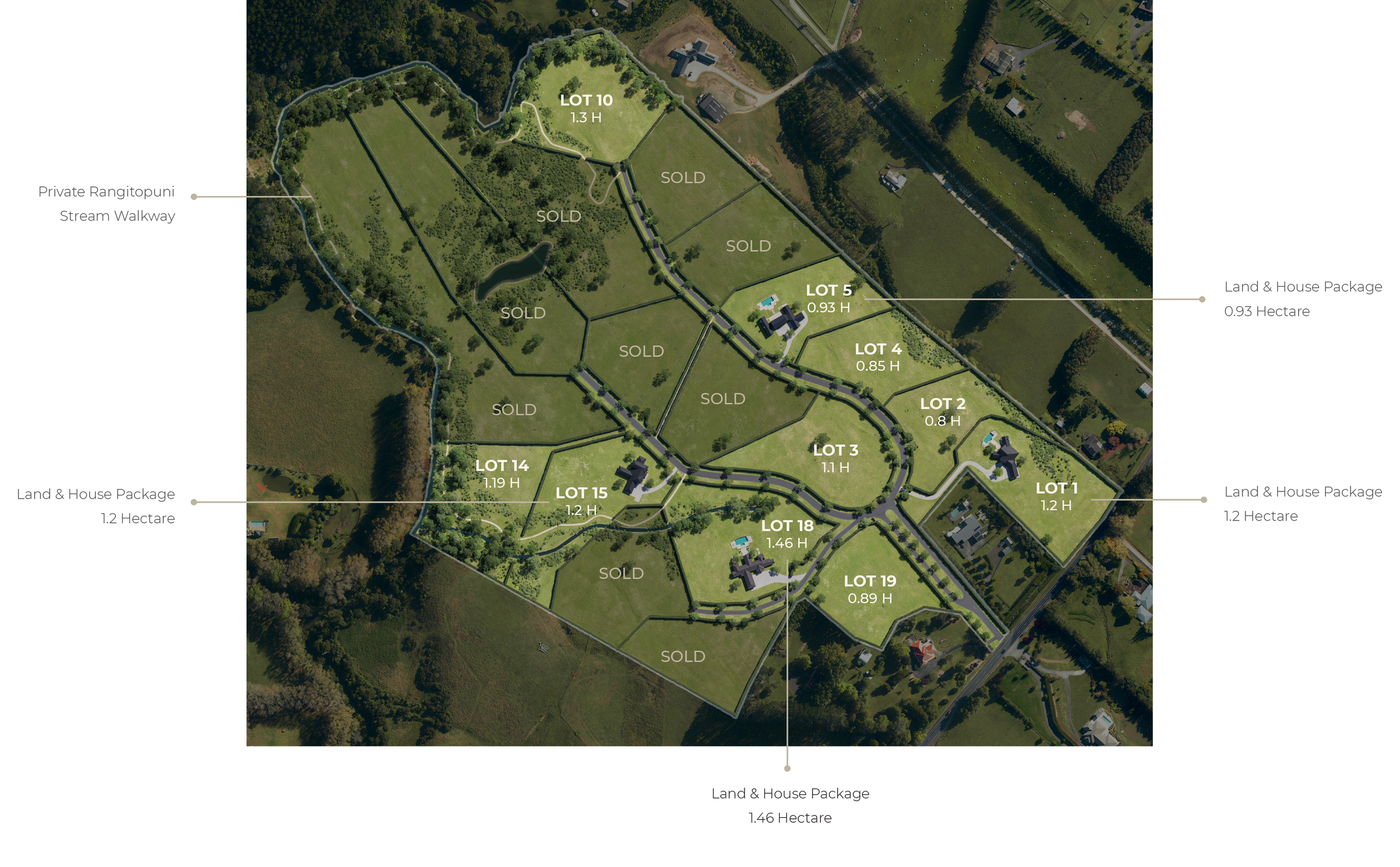 Bordered by the peaceful Rangitopuni Stream, the subdivision embraces the natural beauty of the land, providing a serene, private setting while remaining close to top local amenities, schools